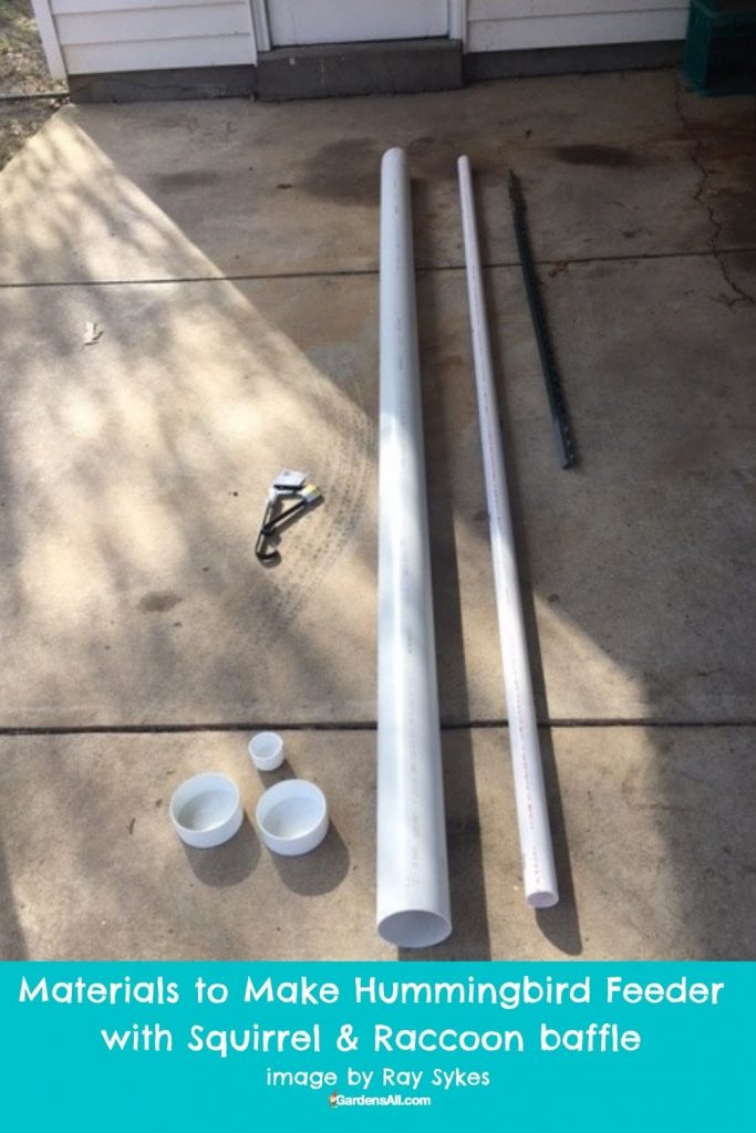 Hi, I finally finish my bird feeder using your design, decided to run the 4 inch pipe to the ground which is six feet tall. The I ½ inch pipe is 8 ft seven inches tall to accommodate the almost 3 foot tall bird feeder.  Read that a squirrel can jump 4 feet so I made the bottom of the feeder 5 feet from the ground. Painted the pole black, going to have a lot of maintenance around the bottom.  Thanks again for your help!!”