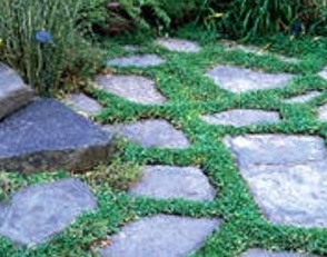 A wonderful lawn substitute, marjoram is a variety of oregano with a milder citrusy pine flavor. Bees and butterflies love the lilac flowers on this creeping, tiny-leafed, plant.