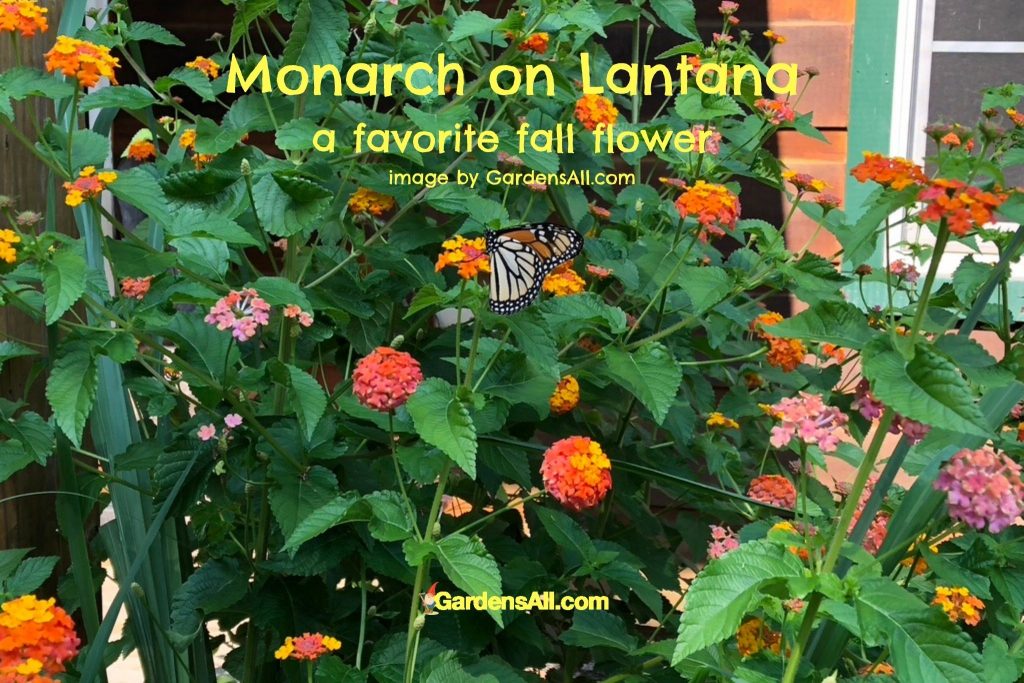 Monarchs and other pollinators savor the sweet nectar of the beautiful orange, pink and yellow blossomed lantana.