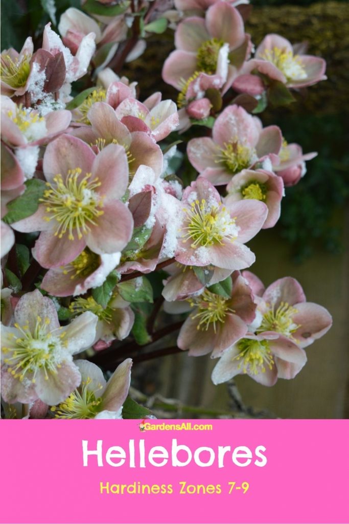 Hellebores, Helleborus x Hybridus, Zones 4-8; Evergreen 6-9