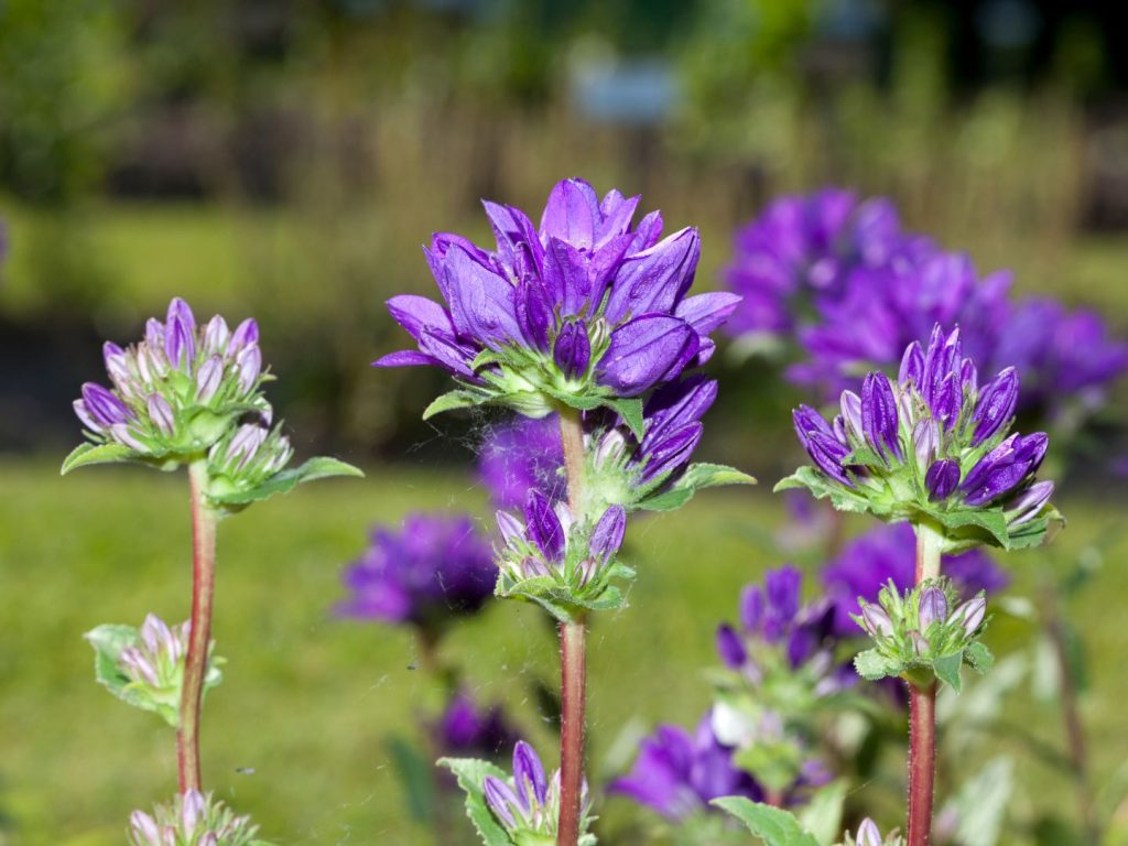 Campanula glomerata, more commonly known as the cluster bellflower or wall bellflower, is one of the shorter purple perennials on this list, reaching two feet tall at maturity.